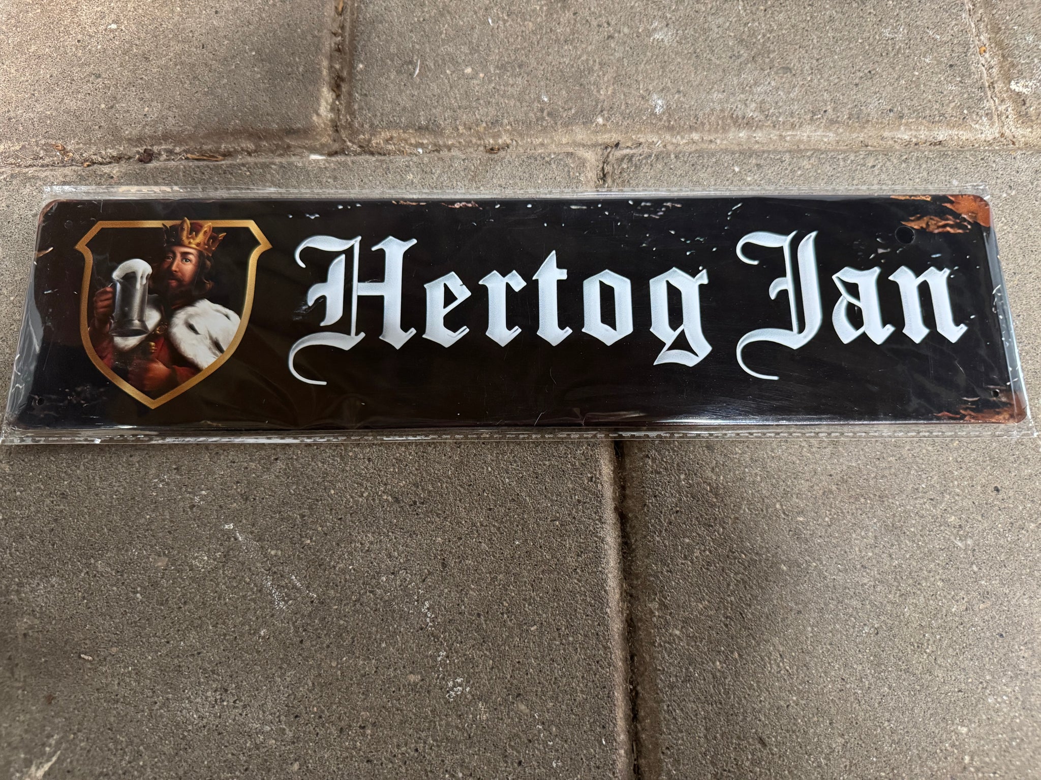 Metalen wandbord Hertog Jan 40 cm lang en 10 cm hoog