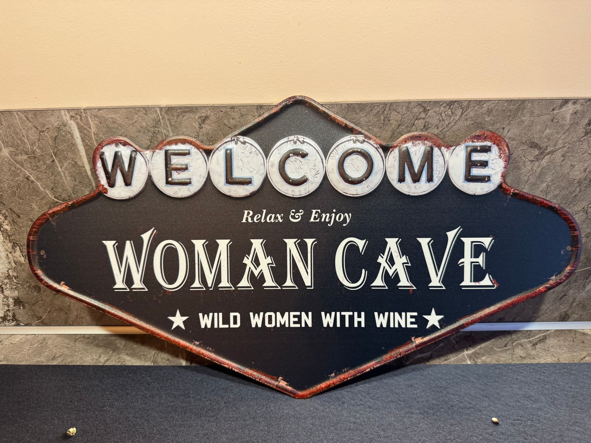 Metalen wandbord Welcome Woman Cave